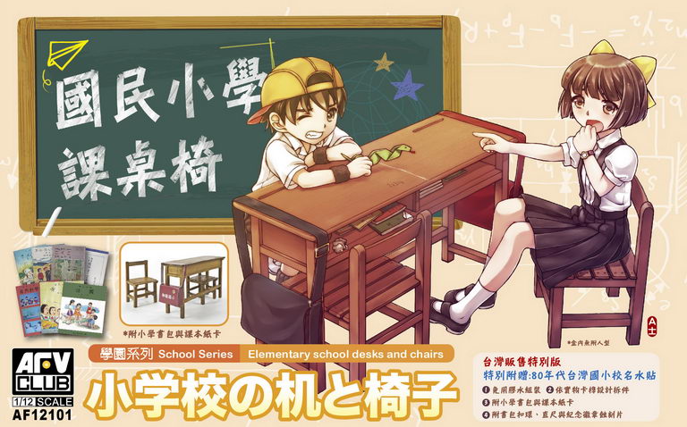 1:12 國民小學課桌椅(一桌二椅)